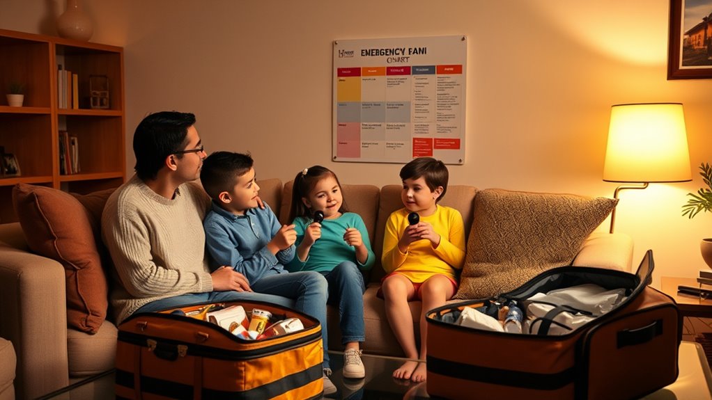It’s also helpful to assign specific roles during an emergency. For example, one person might be responsible for gathering emergency kits, another for checking on neighbors, and someone else for contacting emergency services. Clear roles prevent chaos and ensure that all necessary actions are covered efficiently. Remember, practicing your evacuation procedures and communication strategies regularly builds confidence and reduces panic. Conduct drills at least twice a year, simulating different scenarios so your family can respond instinctively. Repetition cements these habits, making it second nature in a real crisis.