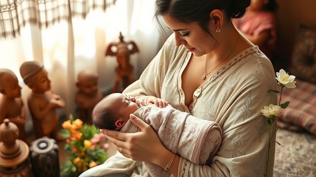 Different cultures celebrate a baby’s first birthday with unique rituals and religious ceremonies. You might participate in a traditional feast, like the Chinese “Zhuazhou,” where the child picks symbolic objects to predict their future. In Mexico, families hold a “Fiesta de Primer Año” with music and prayers. Many cultures also perform blessings or religious rites to mark the milestone, emphasizing community, gratitude, and spiritual protection for the child’s future.