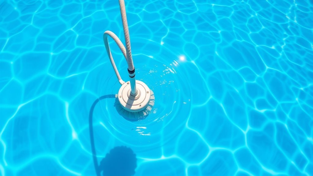 Running your suction pool cleaner daily isn’t necessary and could wear it out faster. Instead, maintain a consistent cleaning schedule based on your pool’s debris level; for example, run it 2-3 times a week if debris is light. This keeps your pool clean without risking damage to the cleaner. Regular use guarantees good circulation and prevents buildup, but avoid overuse to prolong your cleaner’s lifespan.