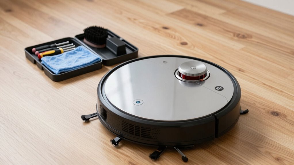 In just 10 minutes, you can boost your robot vacuum’s performance by inspecting and cleaning key components. Start by checking and replacing or cleaning the filter, then clear any hair or debris from the brush rollers. Make sure charging contacts are free of dust and that the dock is unobstructed. Proper maintenance keeps suction strong and extends your vacuum’s lifespan. Stick with this routine regularly, and you’ll discover simple tips to keep your device running at its best.