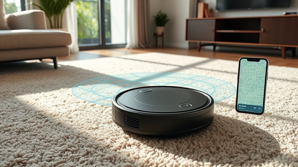 To set up your robot vacuum, start by mapping your home with the app and defining cleaning zones. You can create no-go zones to avoid areas like pet bowls or delicate furniture. Schedule cleaning times and customize settings for different rooms to boost efficiency. Regularly update and monitor your device to guarantee peak performance. If you want to learn more about maximizing your robot’s capabilities, keep exploring how to fine-tune its navigation and zones.