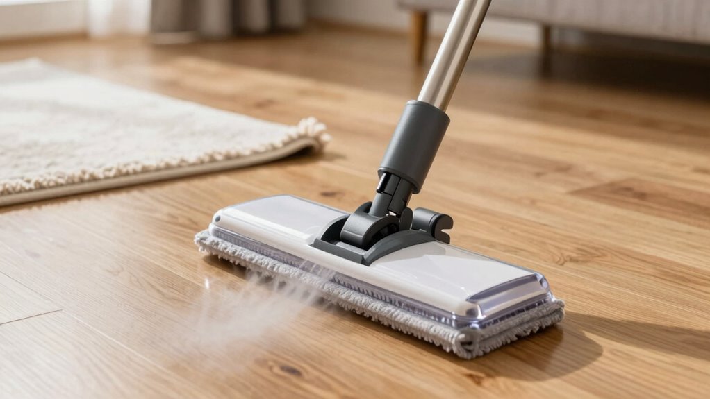 When using a steam mop, guarantee you only clean sealed hard floors like tile, laminate, or sealed hardwood, as steam can damage unsealed wood, porous tiles, or delicate surfaces. Never use on unsealed wood or unglazed tiles, which can warp or discolor. Always follow manufacturer guidelines, avoid excessive water, and keep kids and pets away during and after cleaning. Want to know which floors are safe and which aren’t? Keep going to learn more.