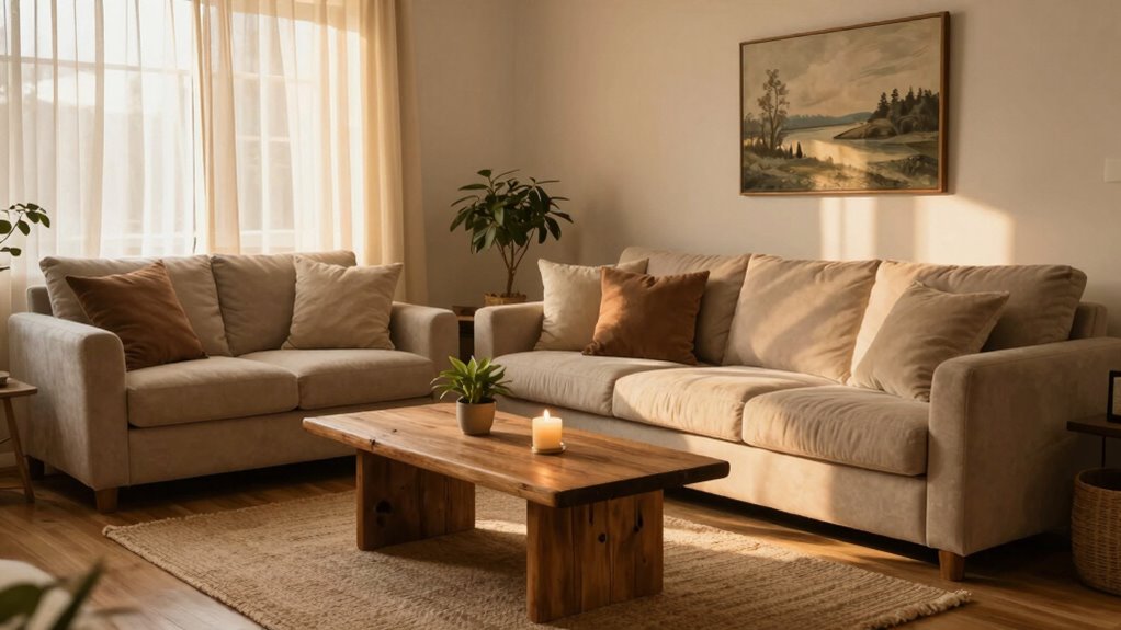 Decluttering substantially boosts home tranquility by fostering mindful organization and reducing chaos. When you clear unnecessary items, you create a serene environment that promotes calmness and focus. Clutter reduction minimizes distractions, making your space more inviting and easier to maintain. This simple act helps you feel more in control and relaxed, transforming your home into a peaceful sanctuary where mental clarity and well-being flourish.