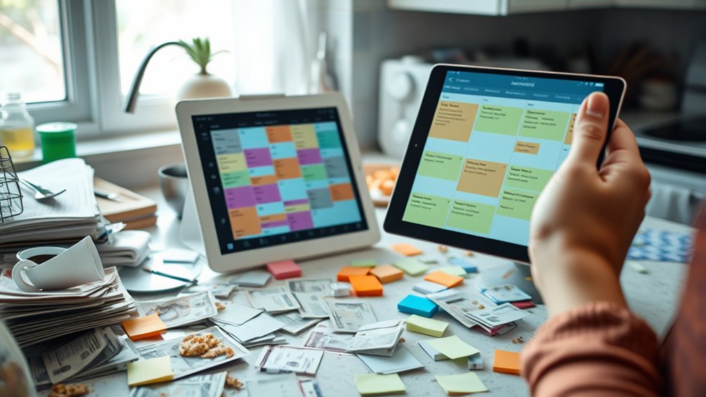 You can use mental load apps like Todoist or Asana to keep track of your tasks easily. Task management tools help you organize, prioritize, and share responsibilities with others, reducing overwhelm. These apps send reminders, create checklists, and provide visual overviews of your mental load, making it more manageable. By regularly updating and reviewing your task management tools, you stay on top of responsibilities and share the mental load effectively.