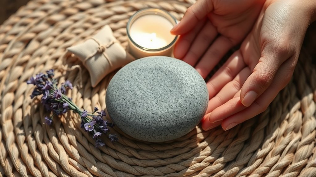 When anxiety strikes unexpectedly, grounding tools can help you regain calm quickly. Techniques like mindful breathing, where you focus on slow, deep inhales and exhales, can soothe your nervous system. The body scan technique helps you reconnect with physical sensations from your toes to your head, reducing tension. These simple strategies require no tools and can be done anywhere, anytime. Keep exploring to discover more effective ways to handle anxiety and restore your sense of control.