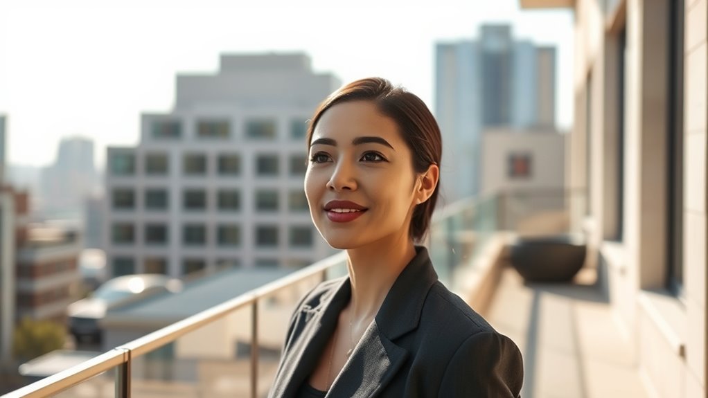 Additionally, understanding the importance of body language and tone helps reinforce your confidence subtly. Maintain eye contact, stand or sit upright, and use a steady, clear voice. These non-verbal cues support your words and convey assurance without arrogance. Remember, true confidence isn’t about bragging or dominating space; it’s about a quiet certainty that you’re capable and deserving without diminishing others. When you combine assertiveness techniques with humility, you create a powerful yet approachable presence that commands respect but doesn’t intimidate.