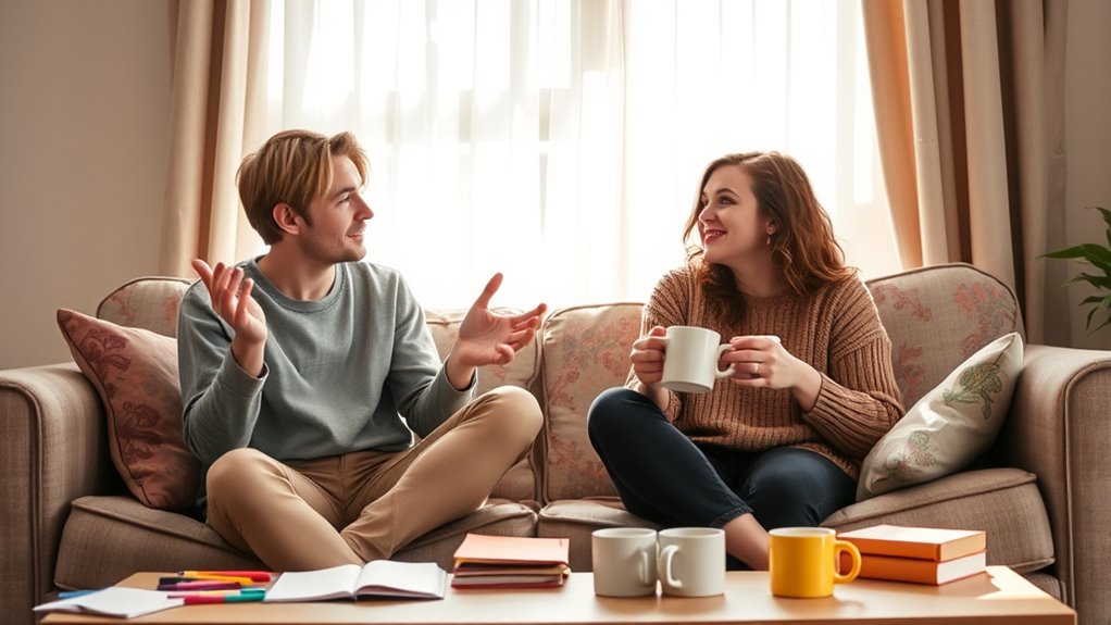 To do a worry dump without drowning each other, set clear boundaries and agree on rules to create a safe space. Focus on expressing your feelings honestly while actively listening without interrupting or judging. Keep the environment calm and use deep breaths if emotions run high. Take breaks if needed and support each other’s sharing. If you keep these steps in mind, you’ll foster a supportive and balanced worry dump session—learn how to deepen this connection further.