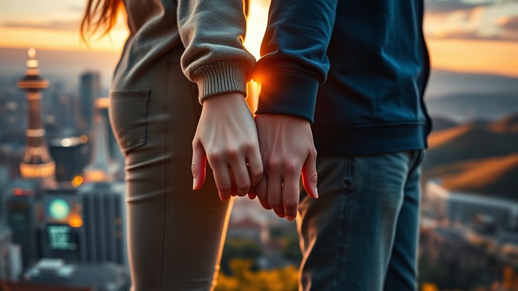 Building trust starts with keeping your communication open and honest. Make sure your channels stay accessible and reliable, so both of you feel connected. By practicing consistent honesty, you create a foundation of transparency that strengthens your relationship over time. Ensuring your communication methods are trustworthy and clear helps prevent misunderstandings and fosters a deeper bond. Incorporating consistent skin care routines can also contribute to a sense of well-being and confidence, which benefits your relationship overall. Paying attention to food safety in your diet can further reinforce mutual care and respect. Additionally, understanding grocery savings strategies can help manage shared expenses effectively, reducing stress related to long-distance living. Leveraging AI-powered discoveries in healthcare may also offer new ways to support each other’s well-being across continents.