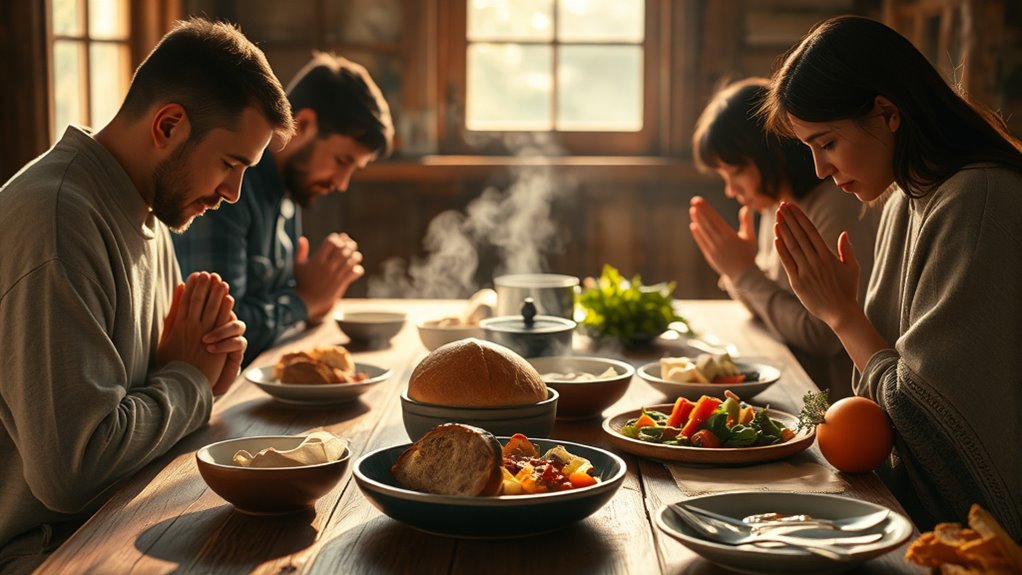 You might be surprised to find how many cultural traditions influence mealtime prayer rituals around the world. In some cultures, prayers are deeply rooted in history, with unique gestures and words that reflect their beliefs. Others keep it simple, emphasizing gratitude. Exploring these variations reveals a rich tapestry of spiritual expressions, reminding you that every tradition offers a meaningful way to connect before eating, enriching your understanding of diverse practices.