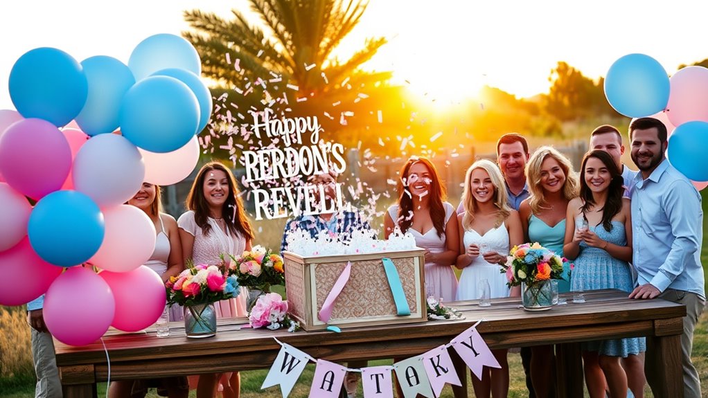 Yes, you can add some humor to your gender reveal with funny captions. Try playful phrases like “Pink or blue, what’s the clue?” or “We’re about to find out if we’re having a tiny prince or princess.” Incorporate gender reveal humor that makes your friends smile, such as “Warning: Expecting a future mischief-maker.” These funny captions will keep the mood light and memorable, making your reveal even more special.