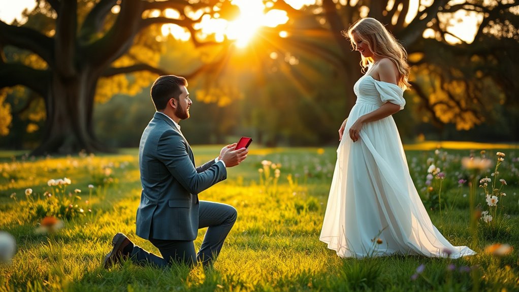 Looking for the perfect way to celebrate your “yes” moment? The right proposal photo captions can beautifully highlight your love story, capturing the excitement, emotion, and gratitude of that special day. From heartfelt and romantic to playful and fun, there’s a caption style for every couple’s vibe. Keep your words genuine and memorable, ensuring your story remains timeless. If you keep exploring, you’ll discover a variety of inspiring ideas to make your proposal photos truly unforgettable.