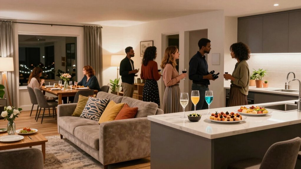 Timing considerations suggest keeping your housewarming party around two to three hours. This window hits the sweet spot for guest engagement without wearing out your welcome. You don’t want to overstay your invite, but you also don’t want guests to feel rushed. Aim for a balance that allows mingling and exploration, making sure everyone leaves with good memories and a desire to return. It’s the perfect way to keep the energy lively and meaningful.