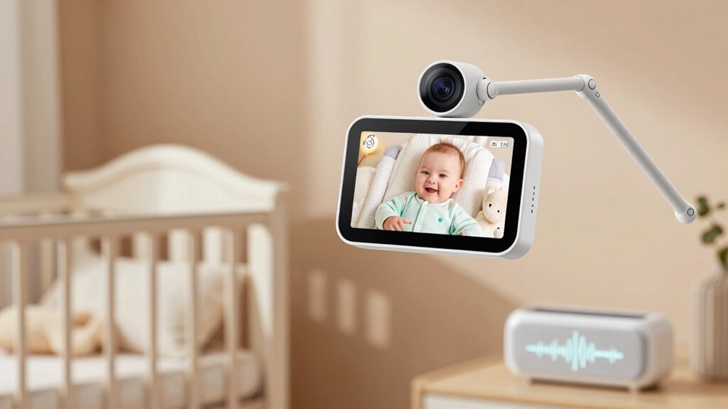 If you’re looking for the best baby monitors with camera and audio for 2026, I recommend checking out several top models that prioritize security, clear visuals, and reliable sound. From WiFi options with multiple cameras to secure no WiFi monitors with auto-zoom and long-range coverage, there’s something for every parent’s needs. If you keep exploring, you’ll find detailed features and reviews to help you choose the perfect monitor for your little one.