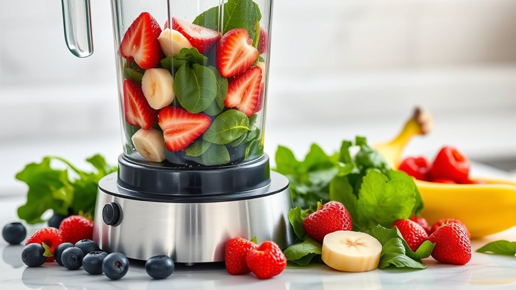 Safety features and stability are crucial considerations when selecting a blender for smoothies, as they directly impact both user safety and convenience. Lid locks and press-to-operate mechanisms prevent accidental spills and ensure the blender runs only when properly assembled. Non-slip silicone pads or suction cups keep the unit steady on the countertop, reducing the risk of tipping or movement during use. Features like automatic shut-off or overheating protection help prevent motor damage and reduce safety hazards during extended blending sessions. A balanced design and anti-slip base minimize vibration, making handling safer and more comfortable. Additionally, clear safety instructions and warning labels are indispensable, guiding proper operation and maintenance. These features collectively create a safer, more stable blending experience, especially when dealing with powerful motors and dense ingredients.