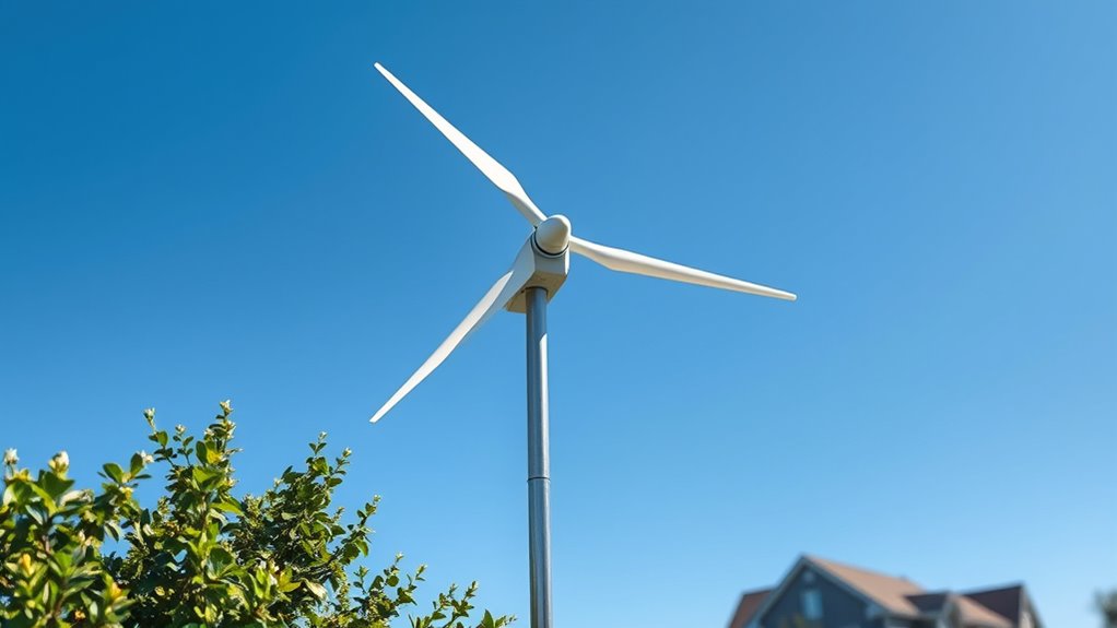 Wind turbine noise can impact neighborhood comfort by creating constant or sudden sounds that may disturb residents. I’ve noticed that larger turbines tend to be louder, but newer, compact models are quieter and less intrusive. When installed properly, with adequate setbacks and noise-reducing technology, the noise is minimal, so it doesn’t substantially bother neighbors. Proper planning ensures everyone can enjoy renewable energy without sacrificing peace and quiet.