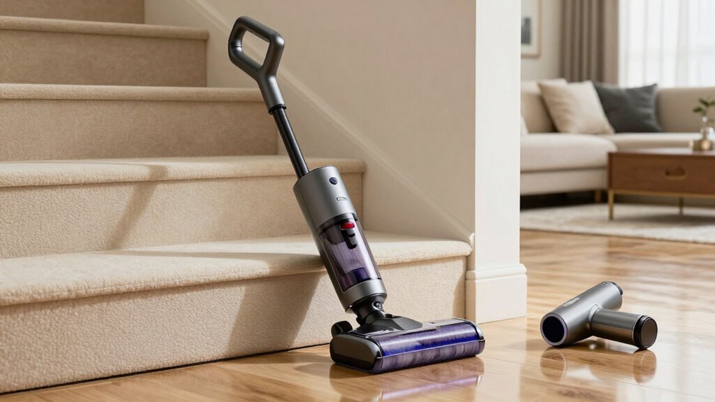 Yes, cordless vacuums often come with specialized tools for stairs and upholstery. I find that these attachments make cleaning much easier because they target tricky spots and delicate fabrics without much hassle. Whether it’s a crevice tool for tight corners or a brush for upholstery, these accessories enhance the vacuum’s versatility. I recommend checking if the model includes these tools to guarantee thorough cleaning of stairs and furniture.