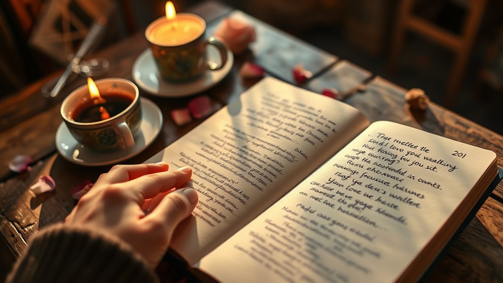 I believe couples should update their journal at least once a week. Imagine flipping through pages filled with your shared thoughts, feelings, and moments—each entry building a richer picture of your relationship. Consistency keeps communication fresh and meaningful, helping you stay connected. Of course, if life gets busy, even a quick note or two can make a difference. Regular use guarantees your journal remains a vibrant reflection of your journey together.