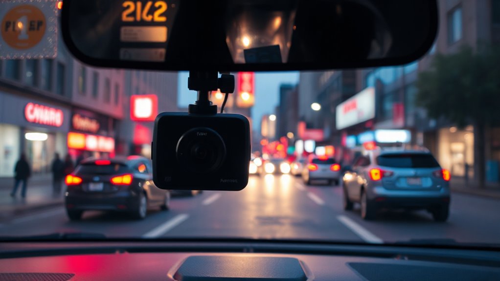 Choosing a dash cam with parking mode becomes much easier when you prioritize models that offer straightforward installation. Look for cameras with clear instructions or tutorials, which make setup less frustrating. Wireless options, like magnetic mounts or WiFi connectivity, eliminate the hassle of extensive wiring, saving you time. Compatibility with hardwire kits or your vehicle’s power source is vital for continuous parking monitoring, so check for easy integration. Adjustable mounting angles and rotatable cameras help you position the device correctly without extra effort. Additionally, models with accessible ports and minimal cable management simplify the process even further. Overall, a dash cam with an intuitive design and flexible mounting options ensures a quick, hassle-free installation, letting you focus on protecting your vehicle with confidence.
