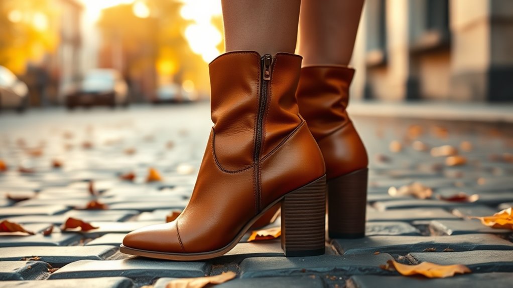 Choosing ankle boots with easy closures can make all the difference in your daily routine. Boots with side zippers or elastic panels let me slip them on and off effortlessly, saving time and hassle. Slip-on styles with pull tabs or goring panels are not only convenient but also keep the look sleek and stylish. I look for shoes with simple closures that don’t require laces or complicated fastenings, which can be frustrating and time-consuming. The placement and design of these closures are important—they should enhance comfort and fit, allowing me to wear them comfortably all day. Functional yet stylish closures give me practicality without sacrificing fashion. Overall, easy-to-wear closures help me enjoy my fall wardrobe with less fuss and more confidence.