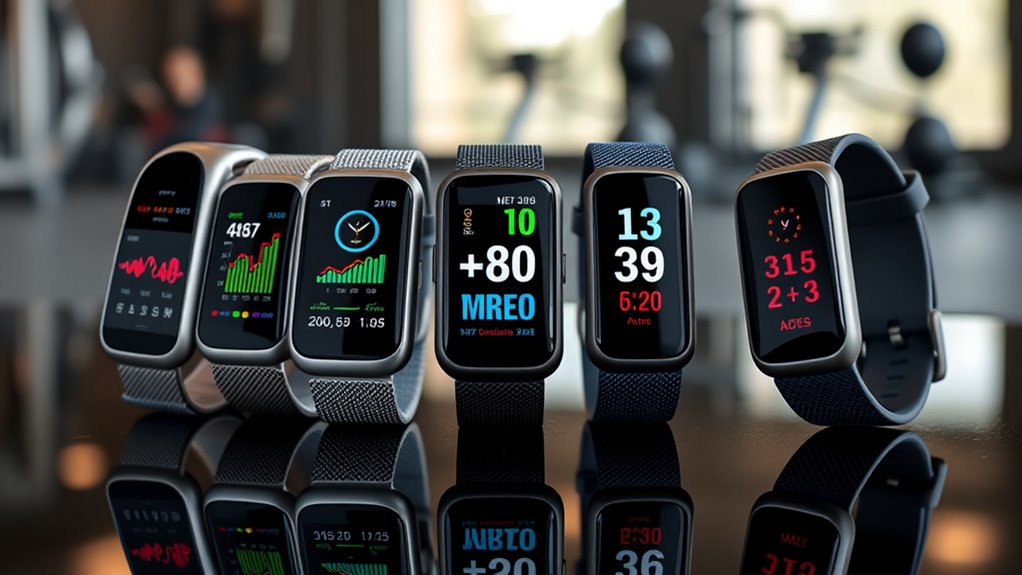 If you’re looking for the best fitness trackers for athletes in 2025, I recommend options like WHOOP 5.0, which offers lab-level accuracy, continuous health monitoring, and personalized insights. Devices like smart fitness bracelets and AMOLED display trackers also provide extensive sport modes, water resistance, and long battery life. These trackers help optimize training, recovery, and overall performance. Keep exploring, and you’ll find detailed insights to choose the perfect device for your athletic goals.