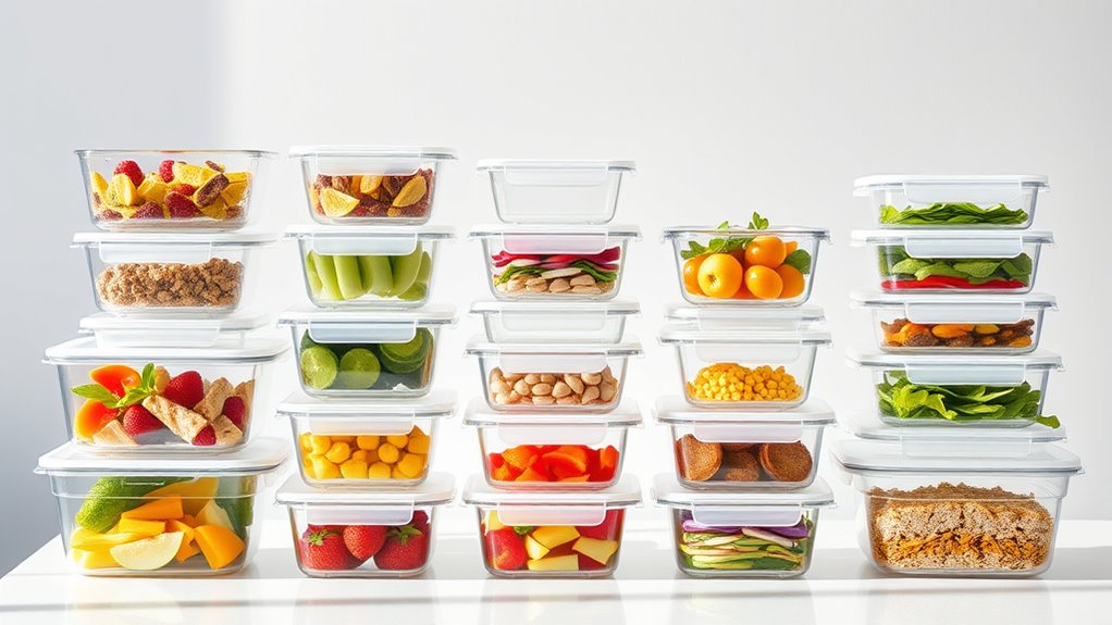 When choosing glass food storage containers, I consider several key factors to guarantee they meet my needs. Things like durability, safety, sealing quality, and size options are essential, along with compatibility with ovens and microwaves. Let’s explore these points so you can find the best containers for your kitchen.