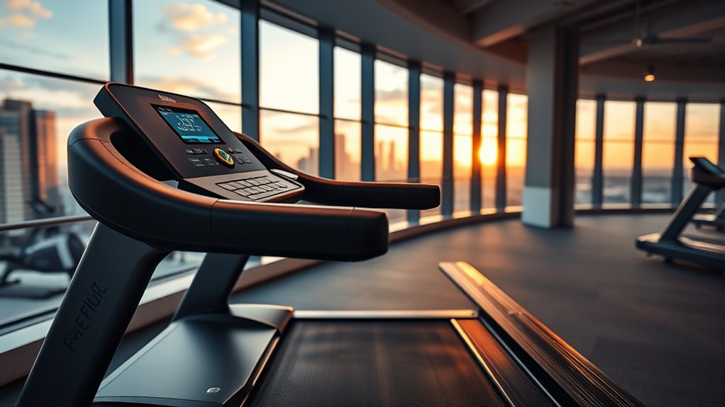 Choosing a high-end treadmill with incline often means balancing powerful features with space efficiency. Compact, foldable designs can cut storage needs by up to 50%, making them perfect for small homes or apartments. Many models feature hydraulic or automatic folding mechanisms, enabling quick, effortless setup in just 5-10 seconds. Slim profile frames, typically under 30 inches wide when folded, help maximize available space for other furniture or activities. Built-in wheels or casters make repositioning easy without heavy lifting. Some designs incorporate vertical or compact folding options, ensuring stability during use while still saving valuable floor space. This combination of convenience and efficiency allows serious runners to enjoy top-tier features without sacrificing room, making space-saving design a vital factor in choosing the right high-end treadmill.