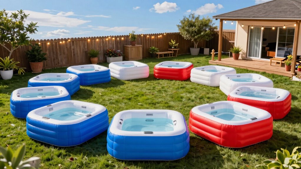 Looking for the best inflatable hot tubs for your backyard in 2026? I’ve found top models that fit any space or need, from cozy 2-person tubs to larger ones for up to 8 people. They feature advanced jets, quick setup, and energy-efficient heating to keep things simple and relaxing. With durable materials and user-friendly controls, these tubs make outdoor baths easy and enjoyable. Keep exploring to find out which options best suit your backyard oasis.