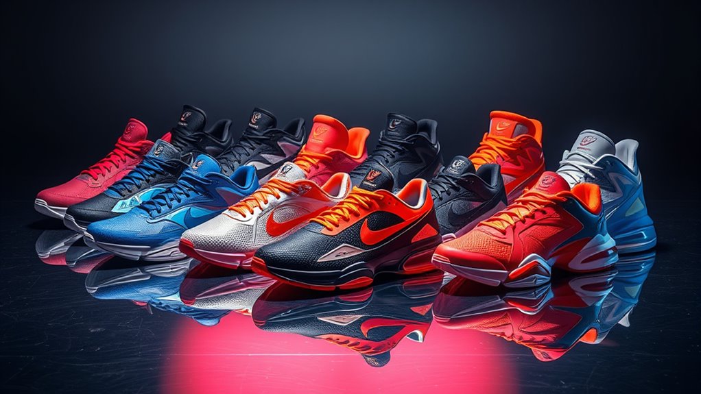 What makes limited-edition athletic shoes truly stand out are their unique design elements that catch the eye and reflect creativity. These shoes often showcase exclusive colorways, special overlays, and distinctive patterns that differentiate them from regular models. Brands push boundaries with innovative materials and construction techniques, like layered overlays or textured fabrics, to boost visual impact. Sometimes, they incorporate thematic motifs or collaborations, giving the shoes cultural or artistic significance. Custom details, such as embossed logos or unique stitching, add to their exclusivity and collectability. Ultimately, these design choices create bold, standout aesthetics that appeal to enthusiasts who want footwear that’s not just functional but also a statement piece. These elements make limited-edition shoes truly special in any collection.