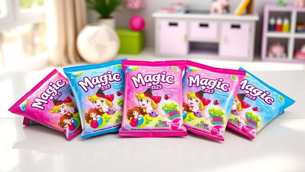 How do you guarantee that the Magic Mixies refill pack you select meets all your needs? First, I always check the packaging’s durability. It should be child-friendly with secure seals to prevent spills or tampering. I also consider the materials used; sustainable packaging made from recyclable or biodegradable materials is a must for me. Clear display of safety warnings, usage instructions, and age recommendations is essential. I prefer compact packaging for easy storage, especially if I plan to keep multiple refills. Additionally, I look for clear labeling of contents and expiration dates, ensuring everything’s compatible with my existing Magic Mixies set. These considerations help me choose wisely and keep the magic flowing!