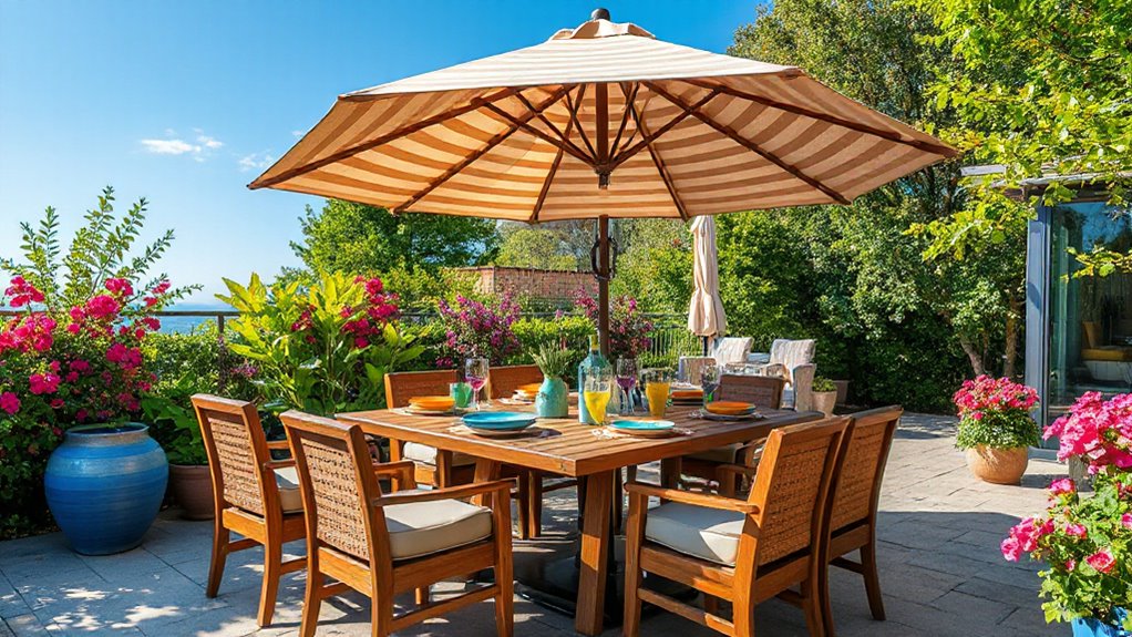 Choosing the perfect patio dining set with an umbrella is like planting a cozy garden—each piece adds a unique bloom to your outdoor oasis. Whether you prefer a small, intimate table or a spacious gathering spot, there’s a set that will turn your patio into a welcoming retreat. So, take your time, weigh your options, and make a choice that’ll make your outdoor space bloom with comfort and style all year round.