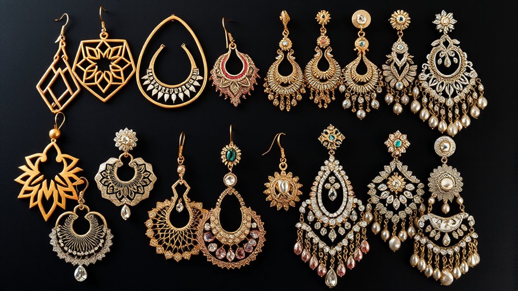 If you’re looking to make a bold style statement, I recommend exploring these top 14 premium statement earring collections. They feature standout designs like chunky gold, floral motifs, irregular petal shapes, and vibrant multicolor stones, all crafted from high-quality, hypoallergenic materials. These collections combine modern and vintage elements to suit any occasion or wardrobe. Keep going, and you’ll discover the perfect pair to elevate your look with confidence and flair.