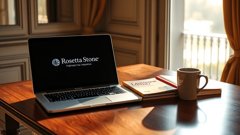 Since the learning methodology employed by Rosetta Stone is central to its effectiveness, I find it essential to contemplate how it aligns with my language acquisition goals. Their Dynamic Immersion approach immerses me in the language, using images and sounds to help me learn, much like children do. I appreciate that it minimizes translation dependency, encouraging me to think directly in the target language. The real-time pronunciation feedback through speech recognition really boosts my speaking skills, too. I enjoy the interactive activities and cultural insights, which make learning feel more engaging. Plus, the adaptive pacing ensures I only move forward when I’m ready, enhancing my retention and building my confidence as I progress.