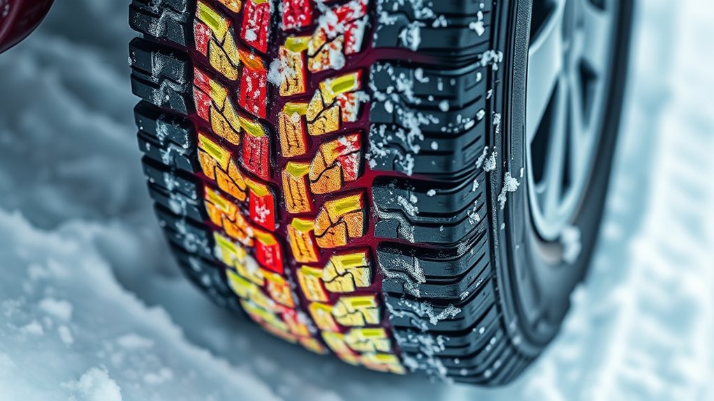 Think of snow traction socks like a snug winter hat for your tires—they fit most, but not all. I’ve found they work well on standard tires, but if you’ve got oversized or specialty tires, check the manufacturer’s guidelines first. Like a key fitting a lock, proper sizing guarantees safety and performance. So, always verify compatibility before slipping them on, and you’ll be ready for winter’s icy challenges.