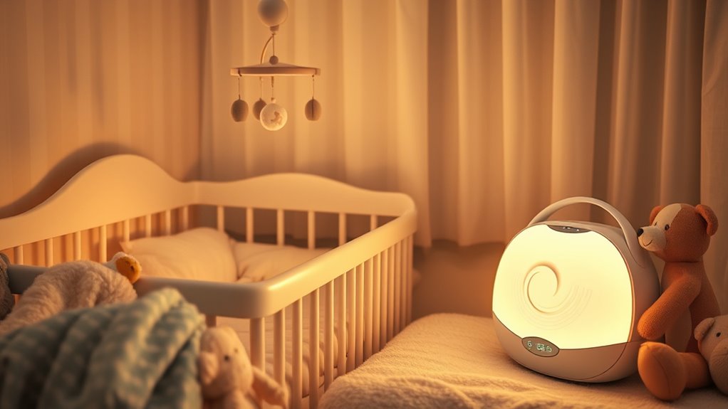 Choosing the right sound machine can feel overwhelming, especially when I know how precious your baby’s sleep is. It’s like balancing between soothing silence and gentle noise—each option offering comfort, yet different in feel. Ultimately, the best machine isn’t just about the sounds but how it fits into your child’s unique sleep world. Trust your instincts, and remember, sometimes less is more—peaceful nights are just a sound away.