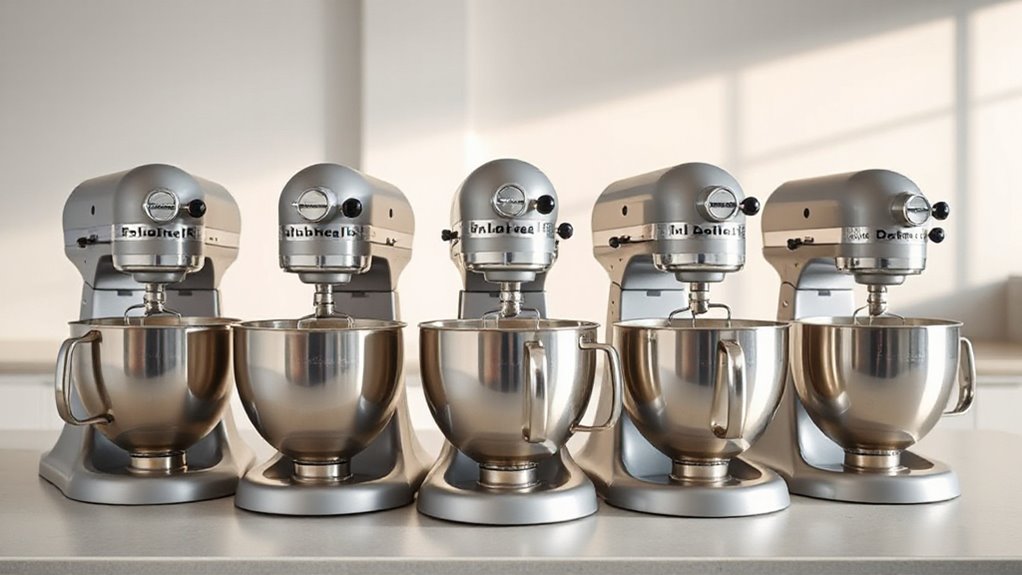 Did you know that stand mixers with stainless bowls can cut prep time by up to 30%? With so many great options, like those I’ve shared, you’re sure to find the perfect fit for your kitchen needs. Investing in a reliable, durable mixer not only makes baking easier but also more enjoyable. So, consider your capacity and features carefully—your future self will thank you for making this smart choice!
