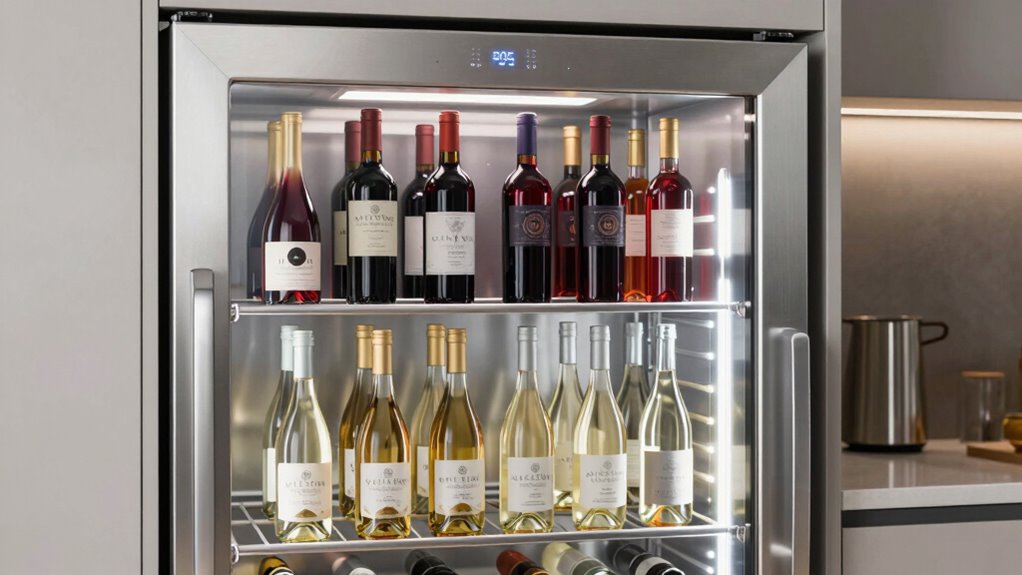 Did you know that energy-efficient appliances now make up over 20% of the market? Yes, there are energy-efficient dual zone wine coolers available. I’ve found models with advanced insulation and low-energy compressors that help save power without sacrificing performance. If you’re aiming to preserve your wine while being eco-conscious, these options are worth exploring. They not only keep your wine at perfect temperatures but also reduce your carbon footprint.